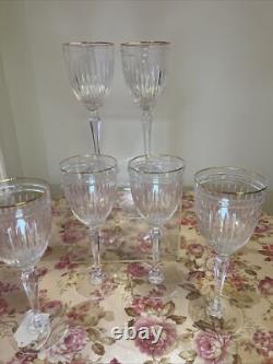 Waterford Hanover Gold 6 Crystal Wine Glasses 8.5 Marked Marquis By Waterford